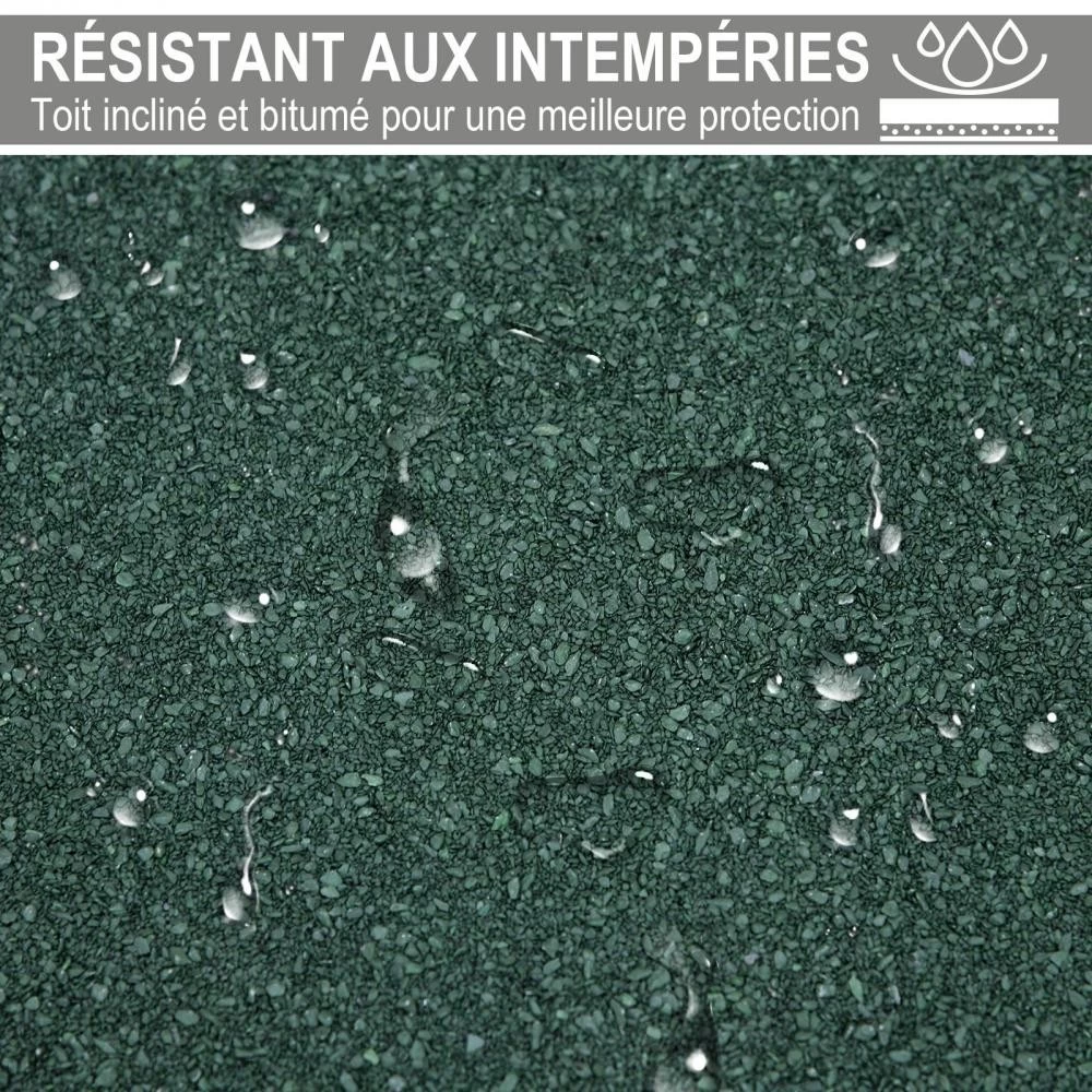 – Toit incliné et bitumé assurant une parfaite étanchéité et une résistance accrue aux intempéries