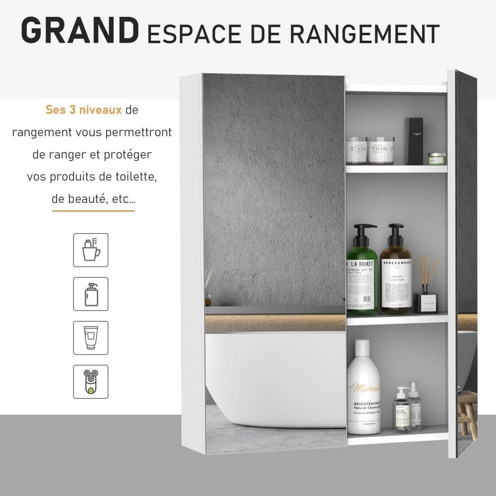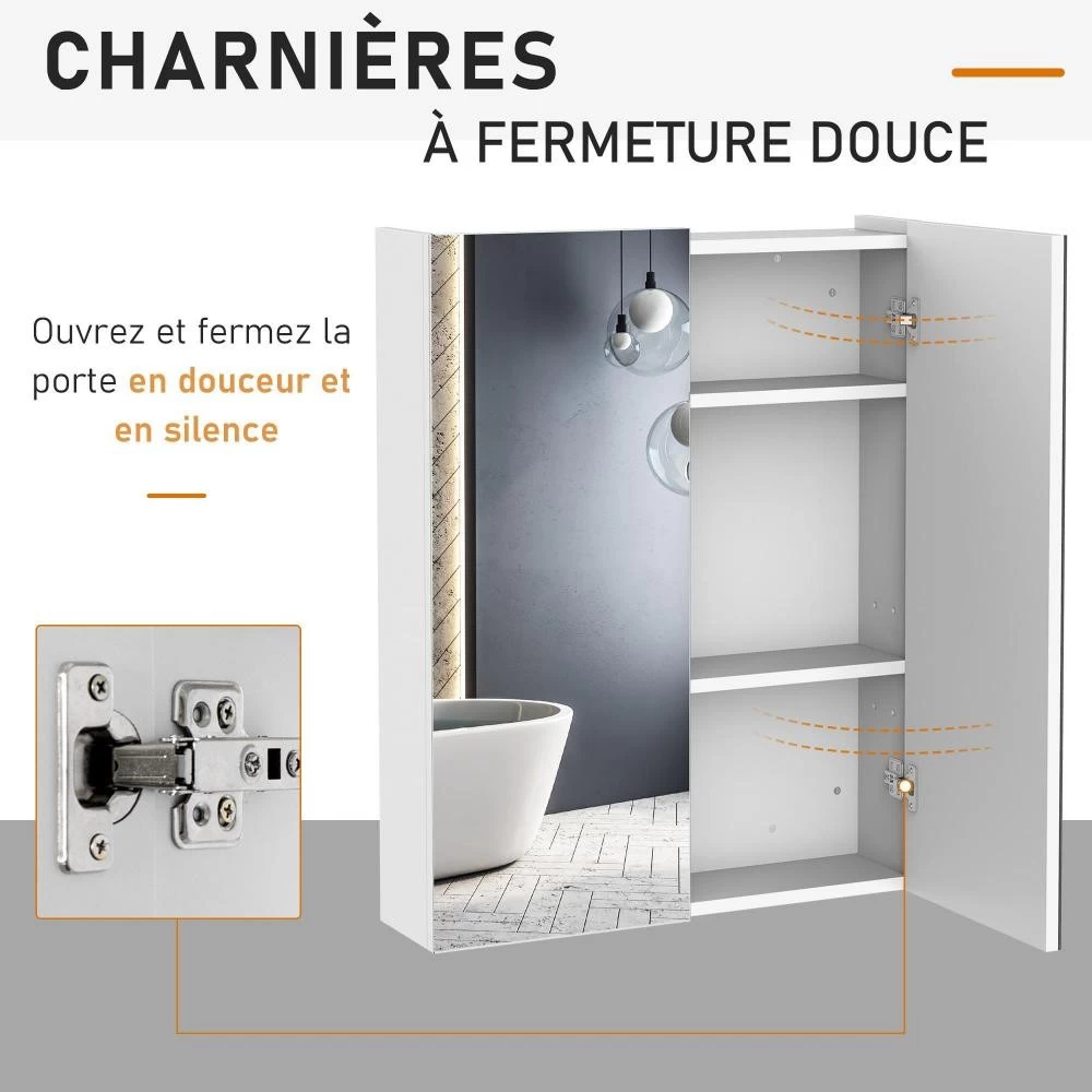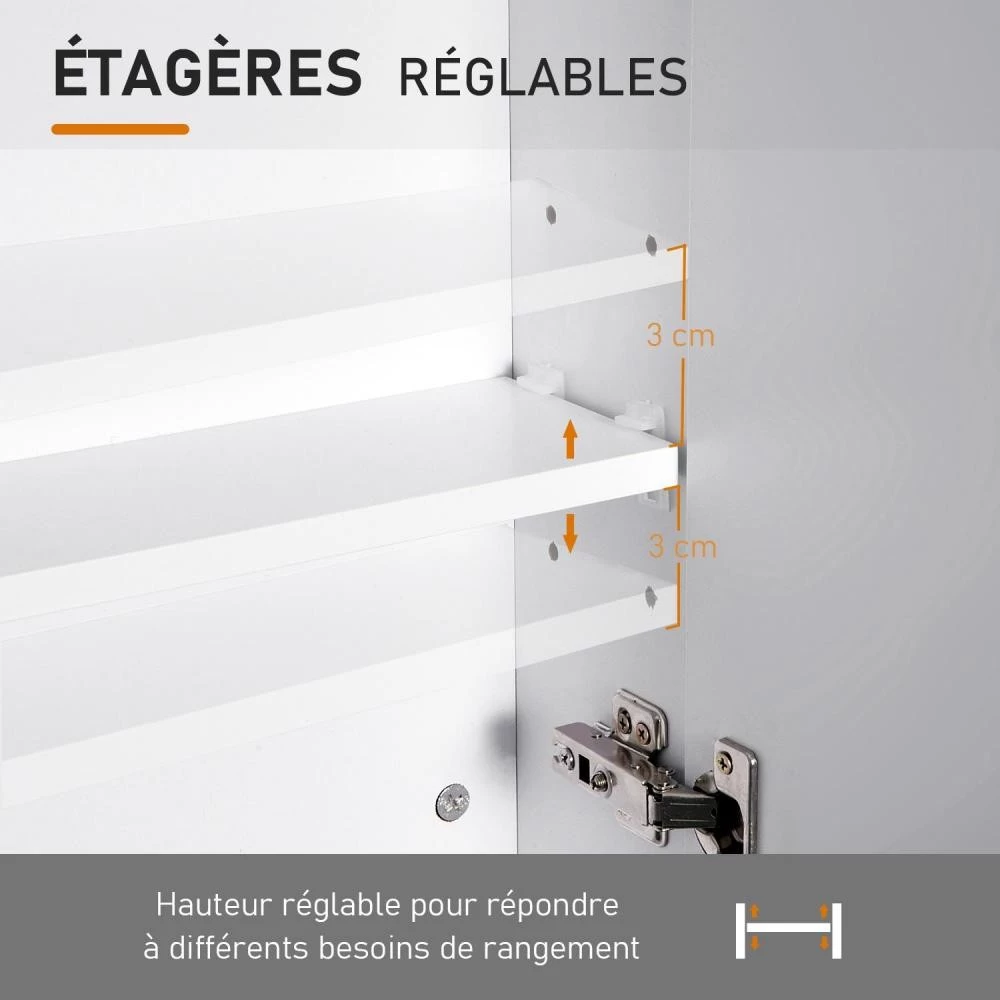 Cette armoire a miroir en MDF a fermeture de porte tampon, est la reponse a vos questions de rangements et d’espaces. Pratique pour votre interieur, salle de bain, , elle revet d’une stabilite et d’une qualite incontestable . Votre espace sera desormais illuminer, grace a cette armoire.