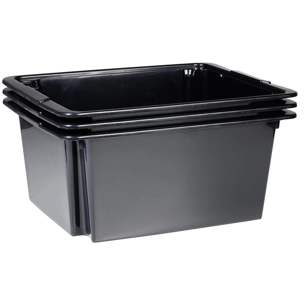 Lot de 3 bacs superposables en plastique noir, idéal pour organiser votre intérieur tout en économisant de l’espace !