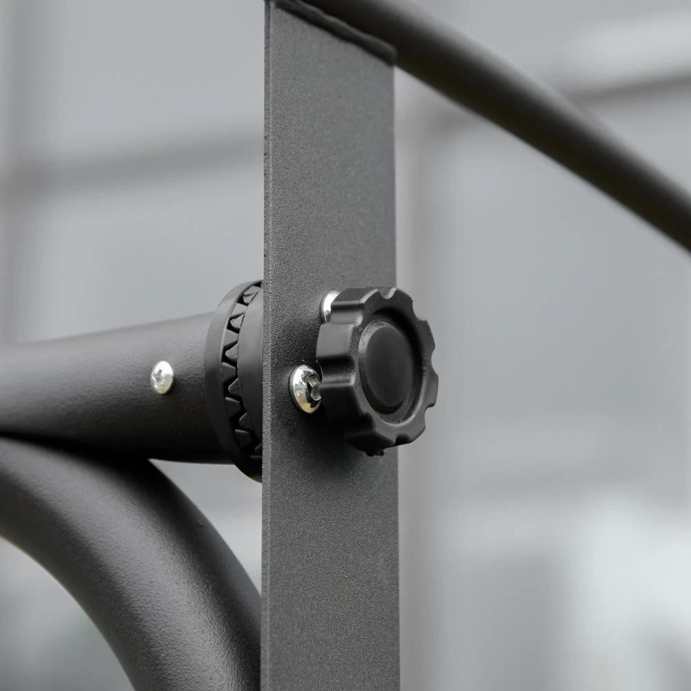– Toile de toit en polyester haute densité 140 g/m² avec inclinaison réglable : idéal pour s’adapter à la hauteur du soleil suivant les heures de la journée