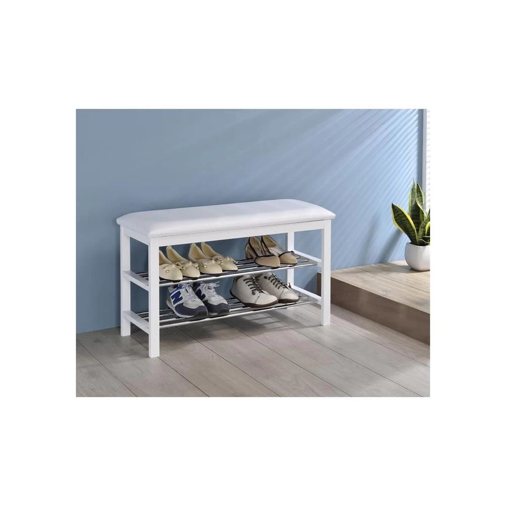 – Le banc est fabriqué en bois massif avec une finition de coloris blanc.