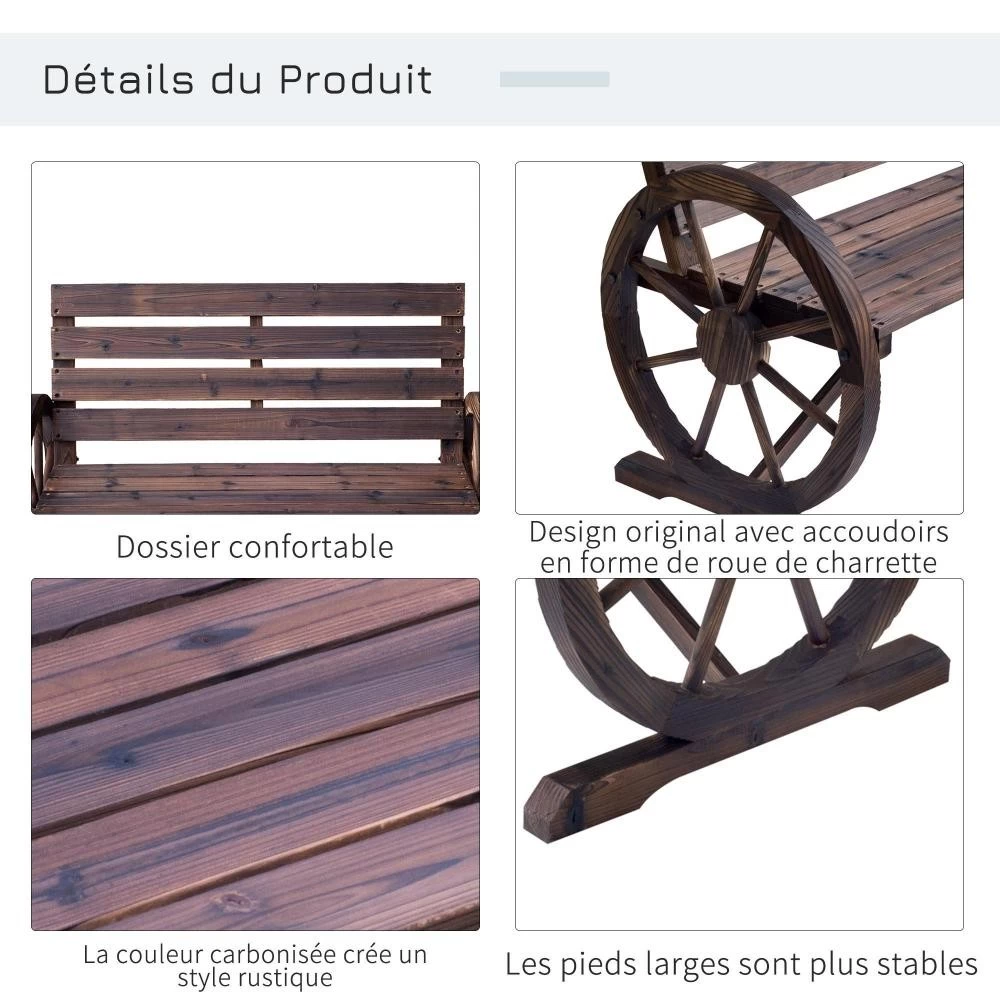 – Banc de jardin 3 places style rustique chic mélant originalité & élégance grâce à ses roues de charettes et assise, dossier à lattes offrant plus de raffinement