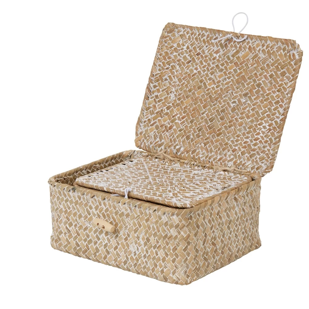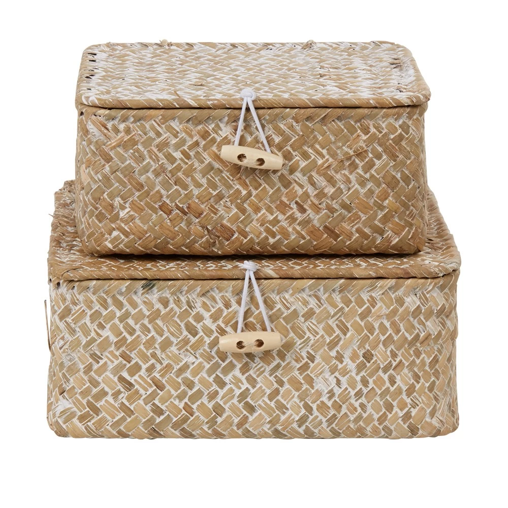 Cetensemble de deux boîtes avec couvercle en jonc de mer tressé apportera un charme authentique et artisanal à votre rangement.