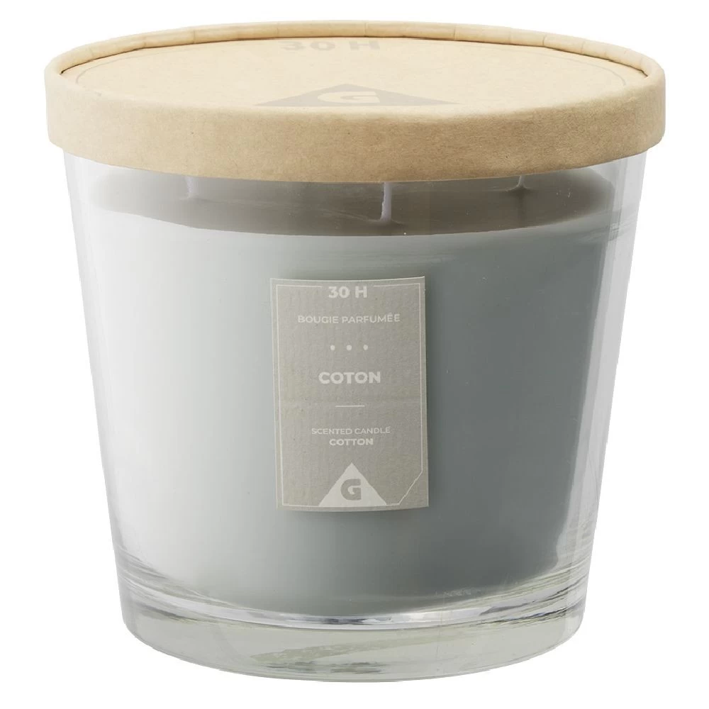 Pour une ambiance chaleureuse et une pièce agréablement parfumée, cette bougie senteur coton dans son pot en verre est idéale !
