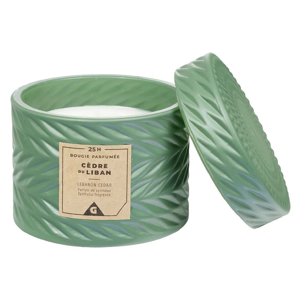 Bougie parfumée au cèdre du Liban, idéale pour apporter une touche déco à votre pièce et y apporter une agréable odeur.