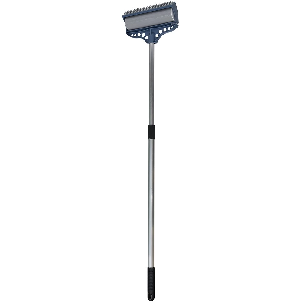Brosse adhésive lavable avec raclette et manche télescopique pour nettoyer les sols et toutes les surfaces difficiles d’accès.