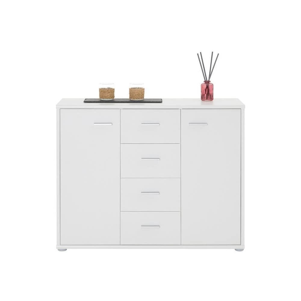 … est disponible dans différents coloris très modernes qui vous permettront de l’associer facilement avec le style de votre intérieur. Equipé de deux espaces de rangement de chaque côté vous pourrez ranger toutes vos affaires personnelles à l’abri. Les 4 tiroirs au centre sont là pour vos documents ou vos objets moins encombrants. Enfin le mélaminé confère à ce meuble de rangement une meilleure résistance aux frottements et aux salissures et le rend très facile d’entretien.