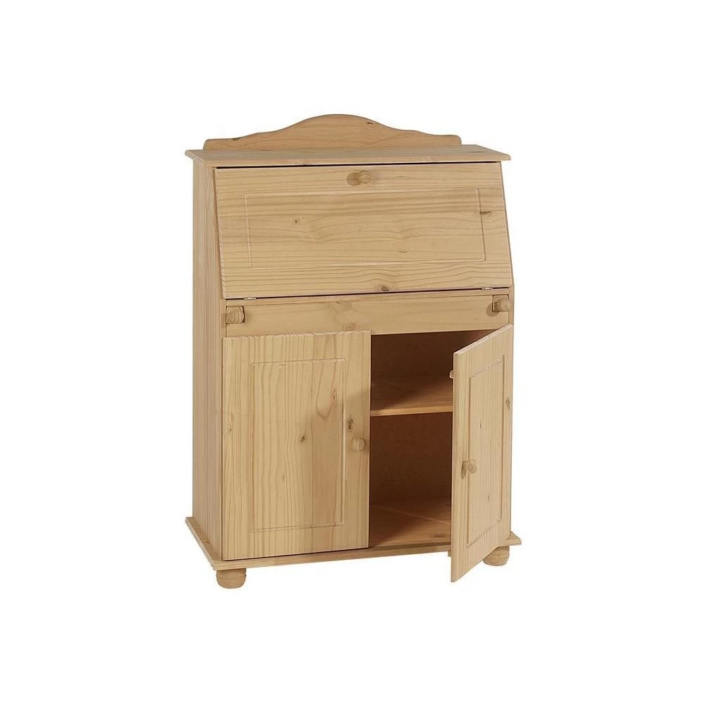 – Le secrétaire est fabriqué en pin massif à la finition teintée et cirée.