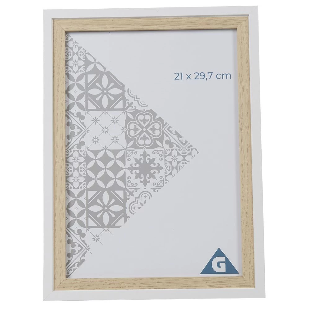 Encadrez l’une de vos plus belles photos au format 21×29,7 cm avec ce joli cadre en bois bicolore naturel et blanc.