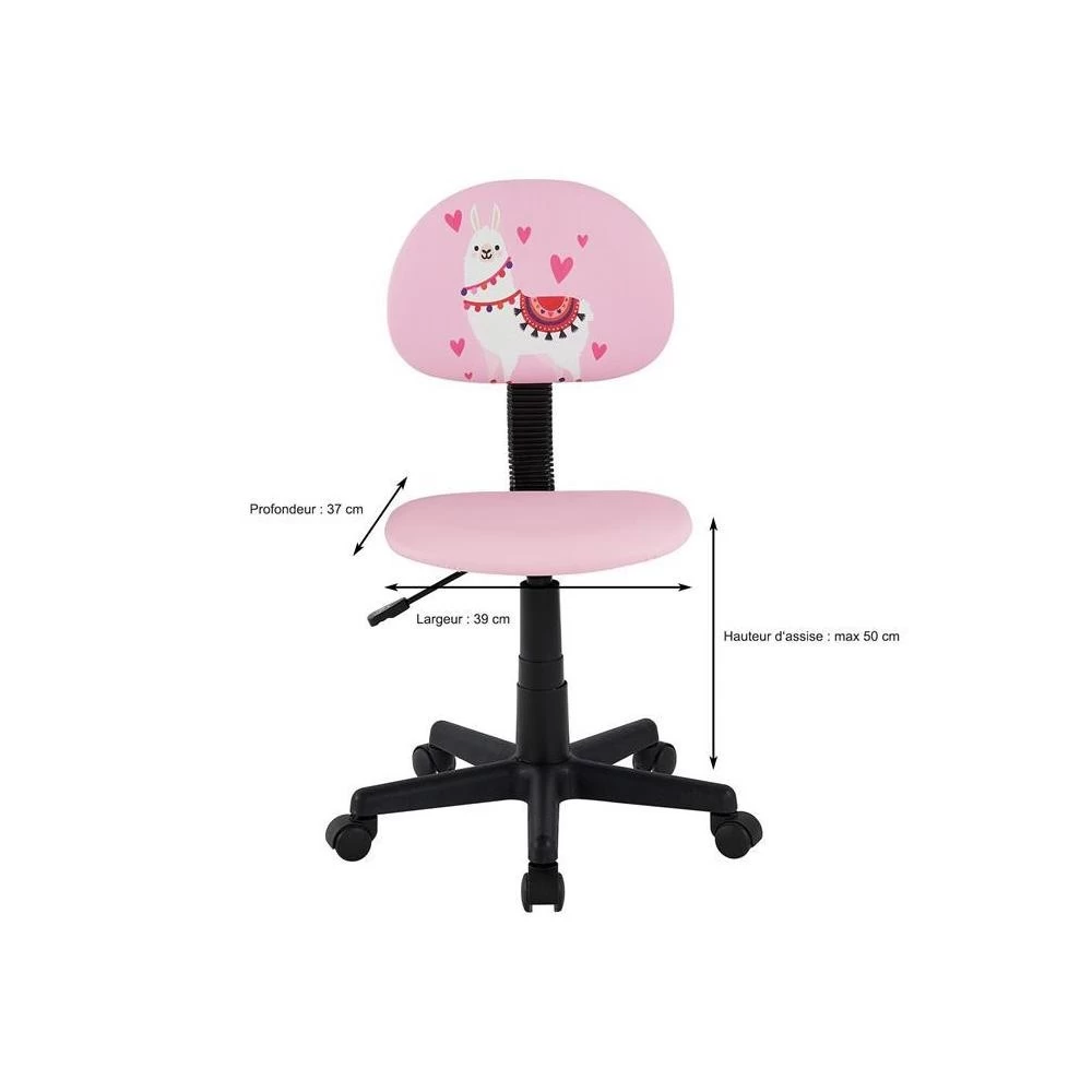 … donnera envie à votre enfant de s’installer à son bureau pour faire ses devoirs. Le joli motif avec le lama entouré de petits coeurs plaira à coup sûr ! Ce fauteuil de bureau est également réglable en hauteur pour offrir à votre enfant une posture bien droite et une hauteur d’assise optimale tout au long de sa croissance. Votre enfant sera libre de tout mouvement grâce à l’absence d’accoudoirs et le rembourrage généreux du siège procurera une assise toujours confortable même lors de longues périodes de travail. Enfin le piétement à 5 branches permettra à votre enfant de se déplacer facilement dans sa chambre grâce aux roulettes et le protègera de tout basculement.