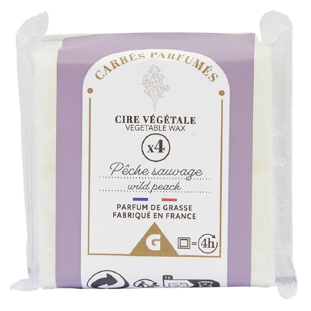 Lot de 4 galets de 40g de cire violette parfumée senteur pêche, idéale pour apporter une douce odeur fruitée à votre pièce.