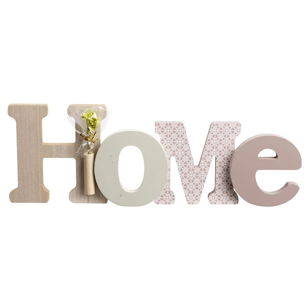 Mot Home en particules de bois avec petites fleurs séchées, à poser sur le meuble de votre choix pour apporter une touche cosy à la décoration de votre intérieur.