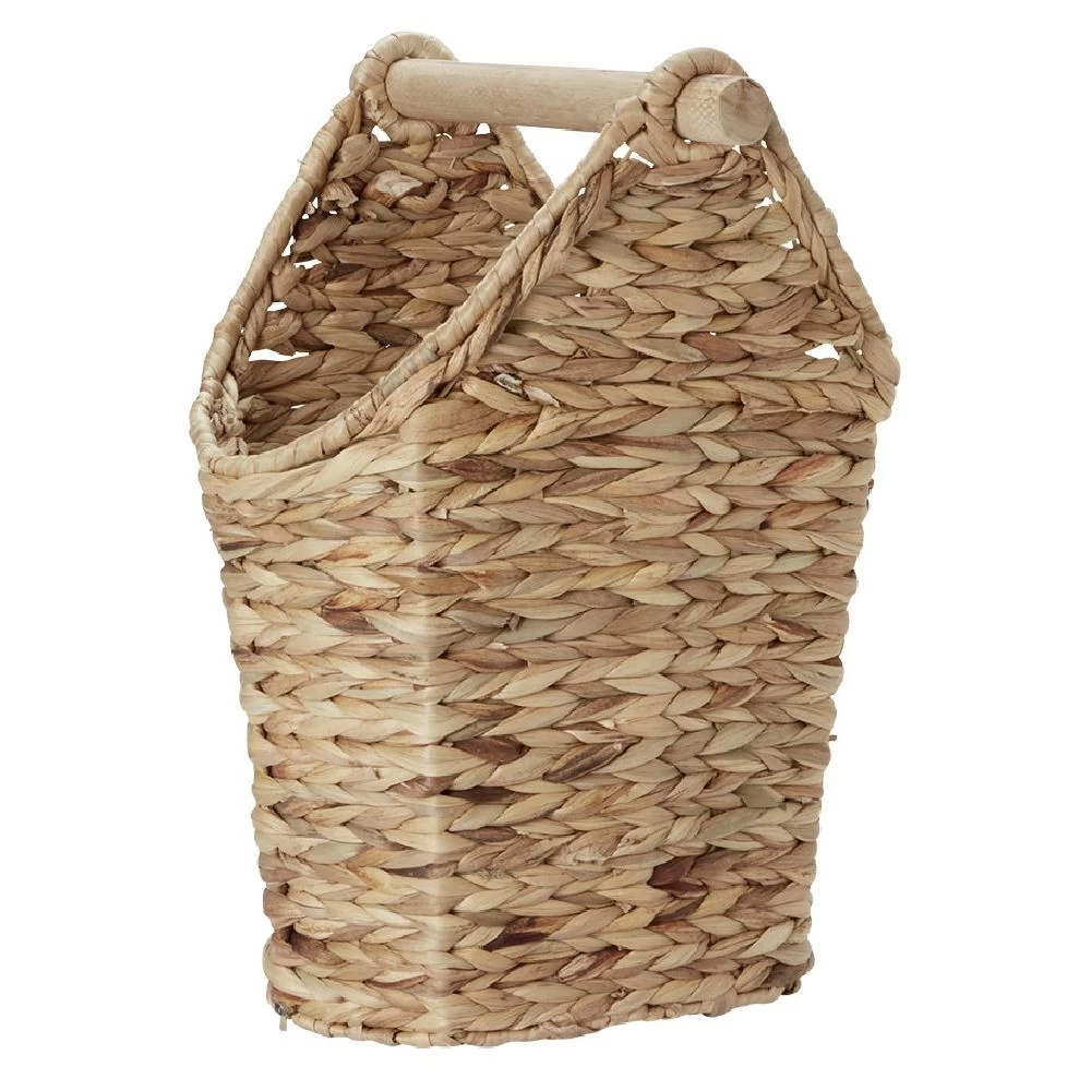 Optez pour cette panière avec dérouleur papier WC au style nature ! Son bac peut faire office de réserve de rouleaux de papier.