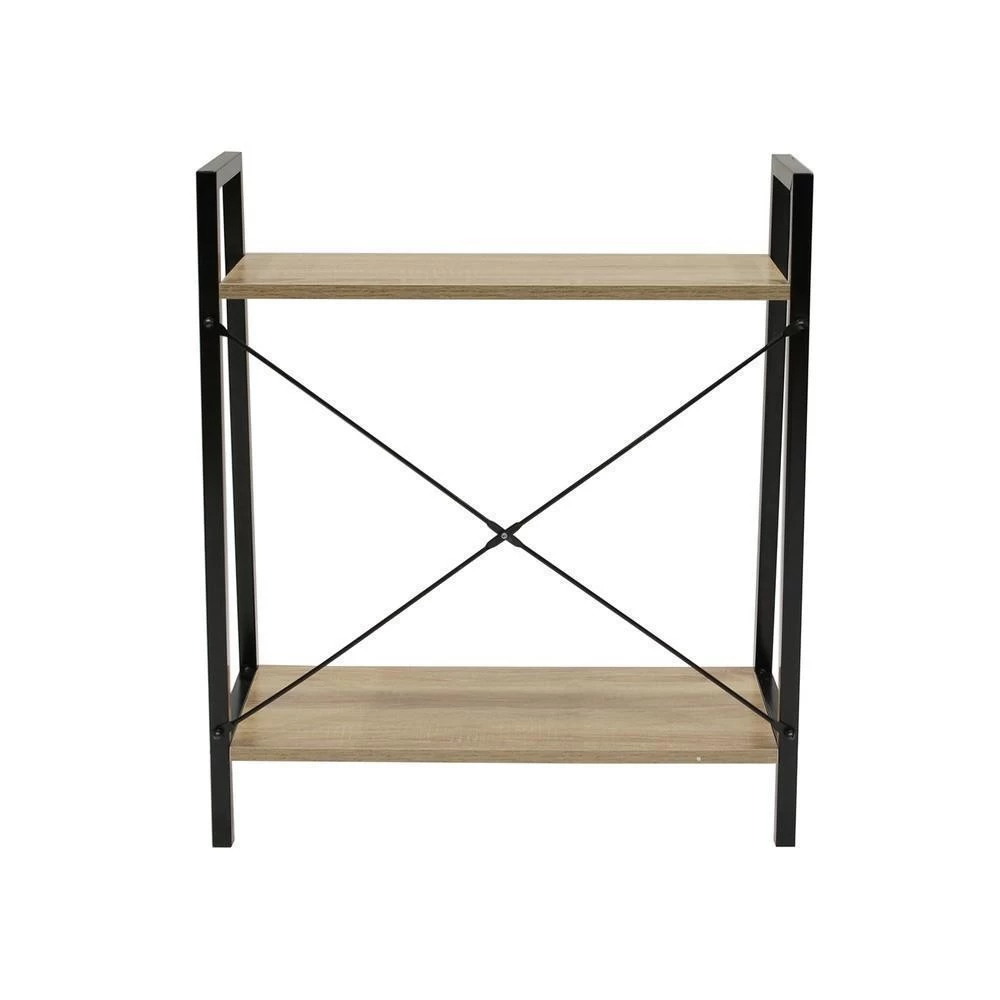 Composée de 2 plateaux couleur bois clair, cette étagère se veut robuste avec sa structure métallique noire très moderne.