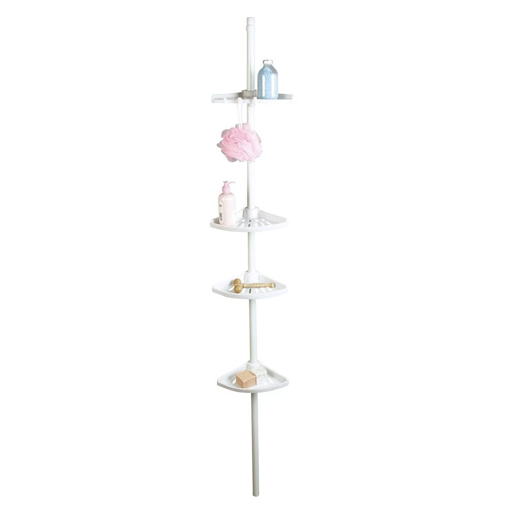 Étagère d’angle pour salle de bain munie de 4 étagères. Hauteur ajustable de 110 à 250 cm.