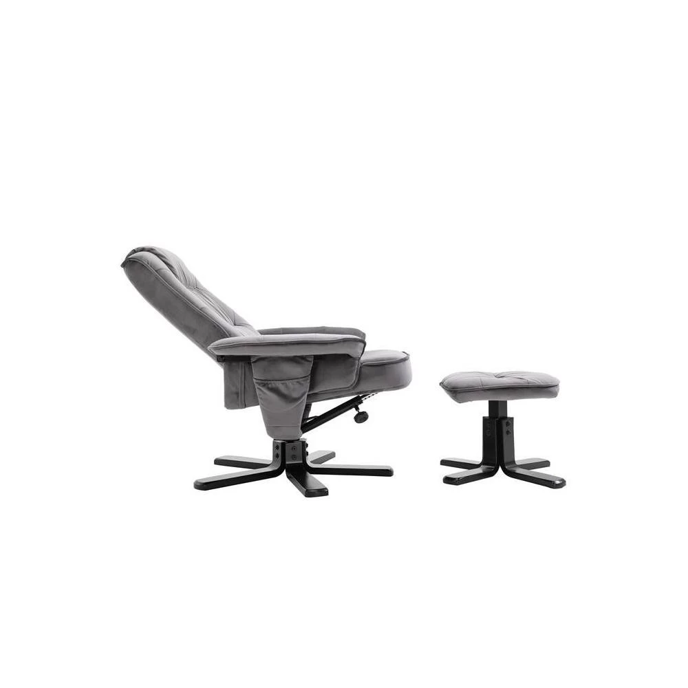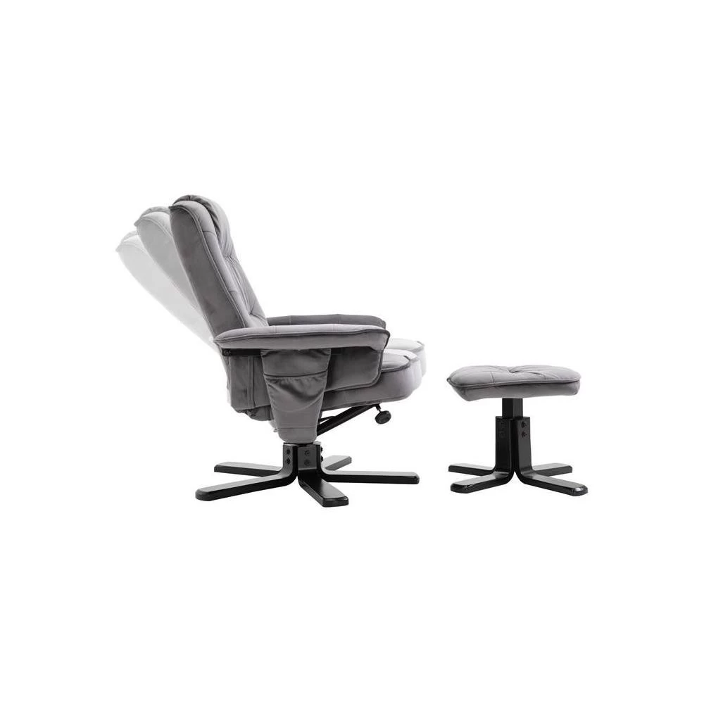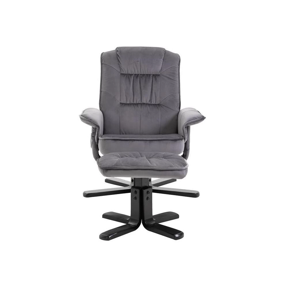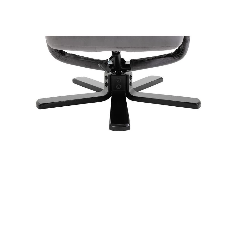 – Le revêtement du fauteuil et du repose-pieds est en velours de coloris gris.