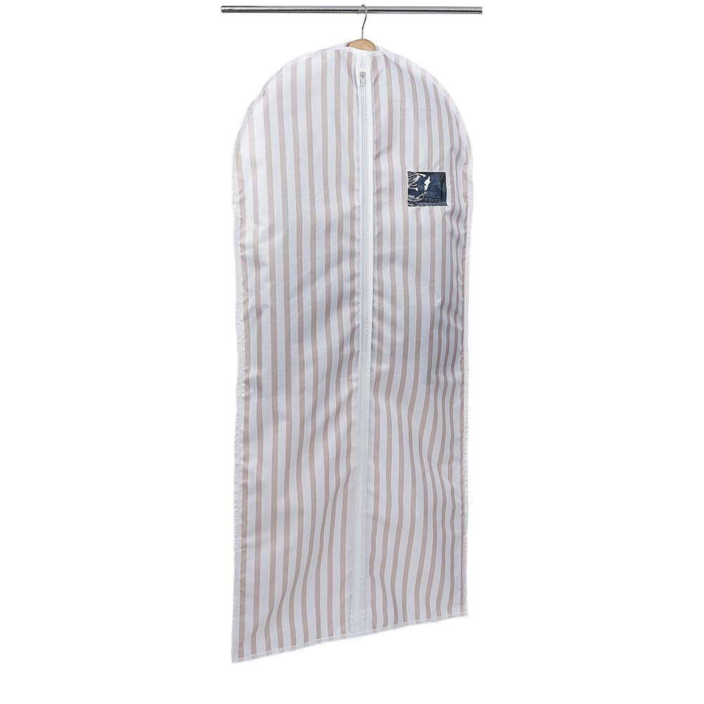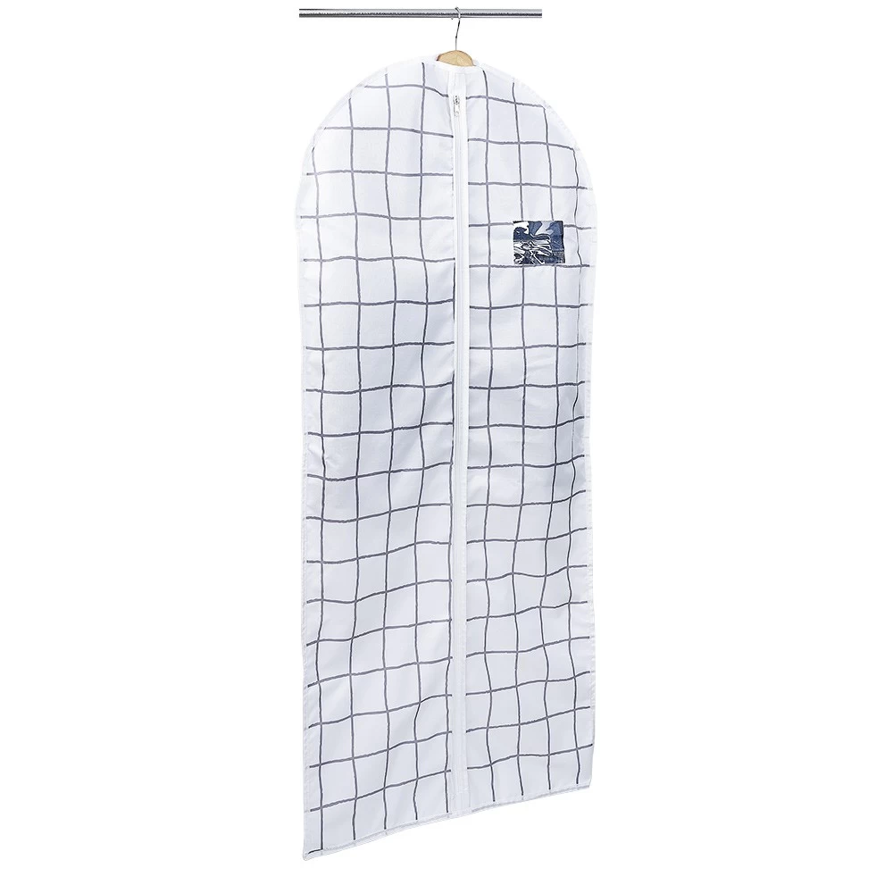 Housse pour vêtement avec fenêtre transparente permettant de jeter un coup d’oeil rapide sur son contenu.