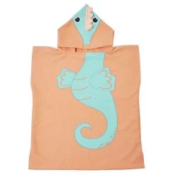 Poncho De Bain Enfant Funky Motif Hippocampe Bleu Et Orange 50xH80cm
