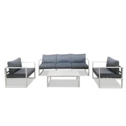 Salon De Jardin Aluminium 5 Places Couleur Blanc Gris – VINCENNES