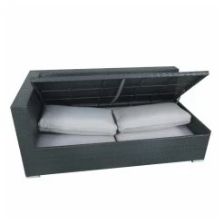 Table Basse De Jardin Plateau Verre Trempé 5 Mm Rotin Tressé 85 X 50 X 39 Cm Max. 70 Kg Gris