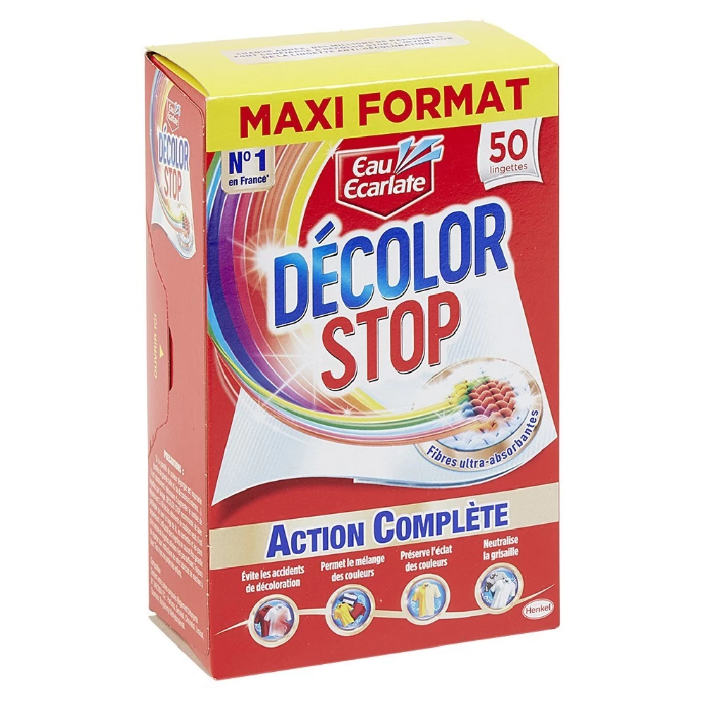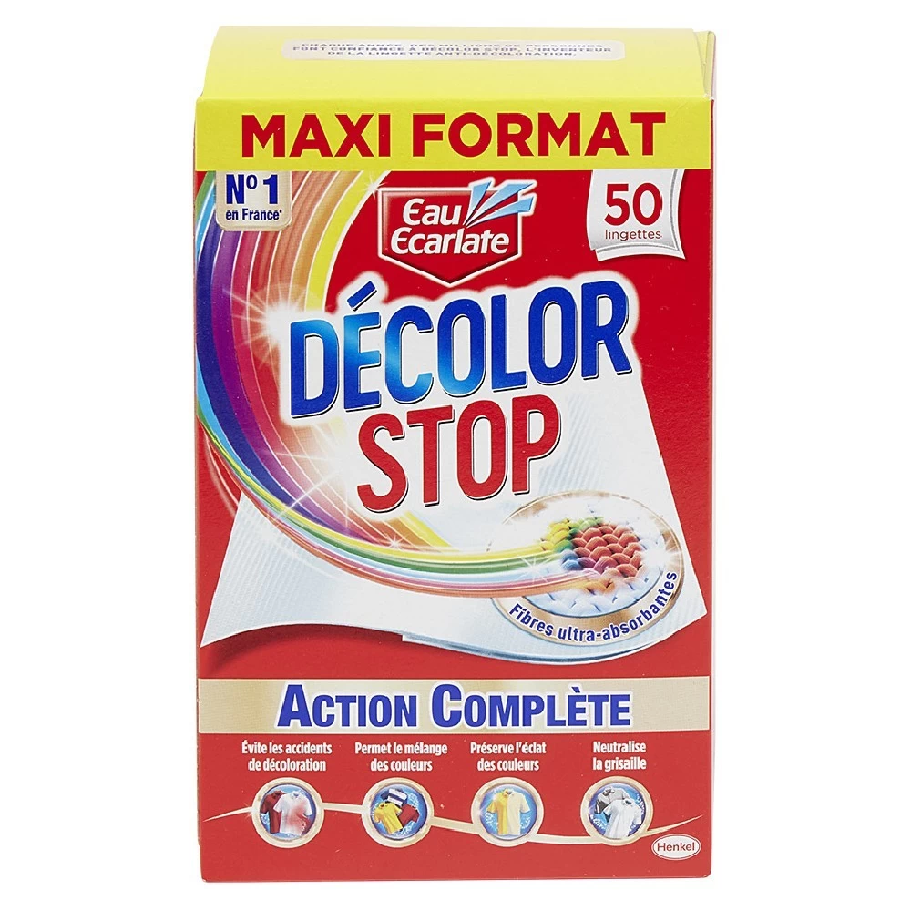 Decolor Stop Action Complète, notre meilleure lingette anti-décoloration assure une protection optimale de vos vêtements, non seulement des couleurs dégorgées mais également des résidus qui ternissent les couleurs de votre linge.