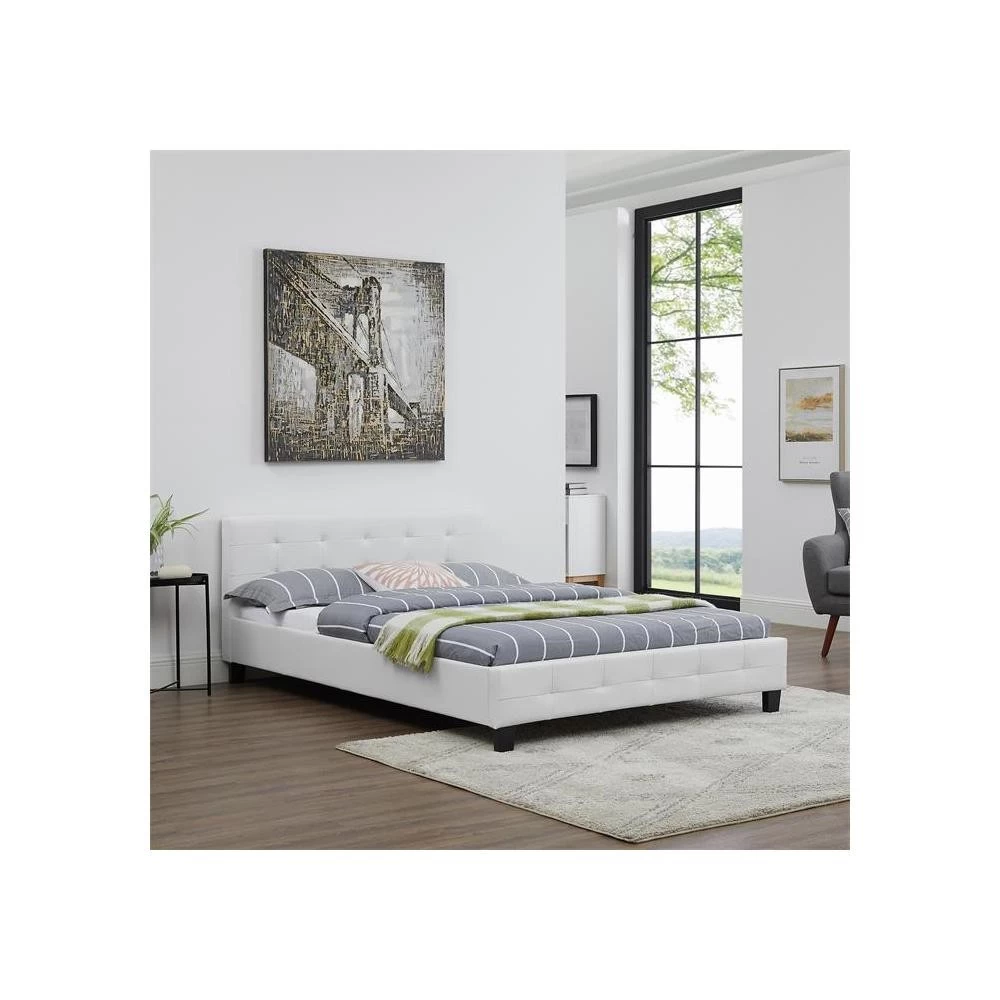 … est très engageant grâce à son aspect moelleux et accueillant obtenu par le rembourrage généreux de sa structure au revêtement capitonné. Son style contemporain apportera une touche de design dans votre chambre à coucher et attirera tous les regards. La stabilité du lit est assurée par 4 pieds robustes et renforcée par la présence d’une traverse centrale et de 2 pieds de soutien supplémentaire sous le sommier à lattes ce dernier est inclus dans la livraison.