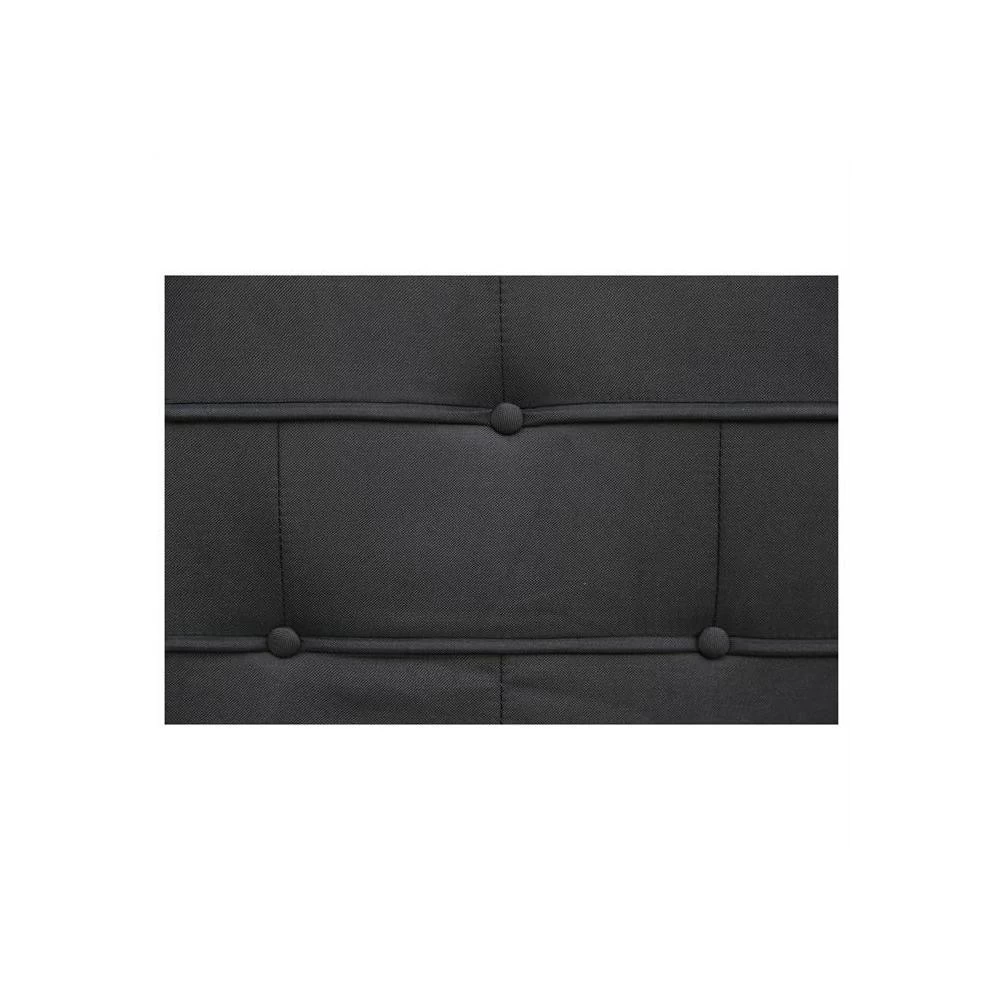 – La structure du lit est recouverte d’un revêtement en tissu capitonné de coloris noir.