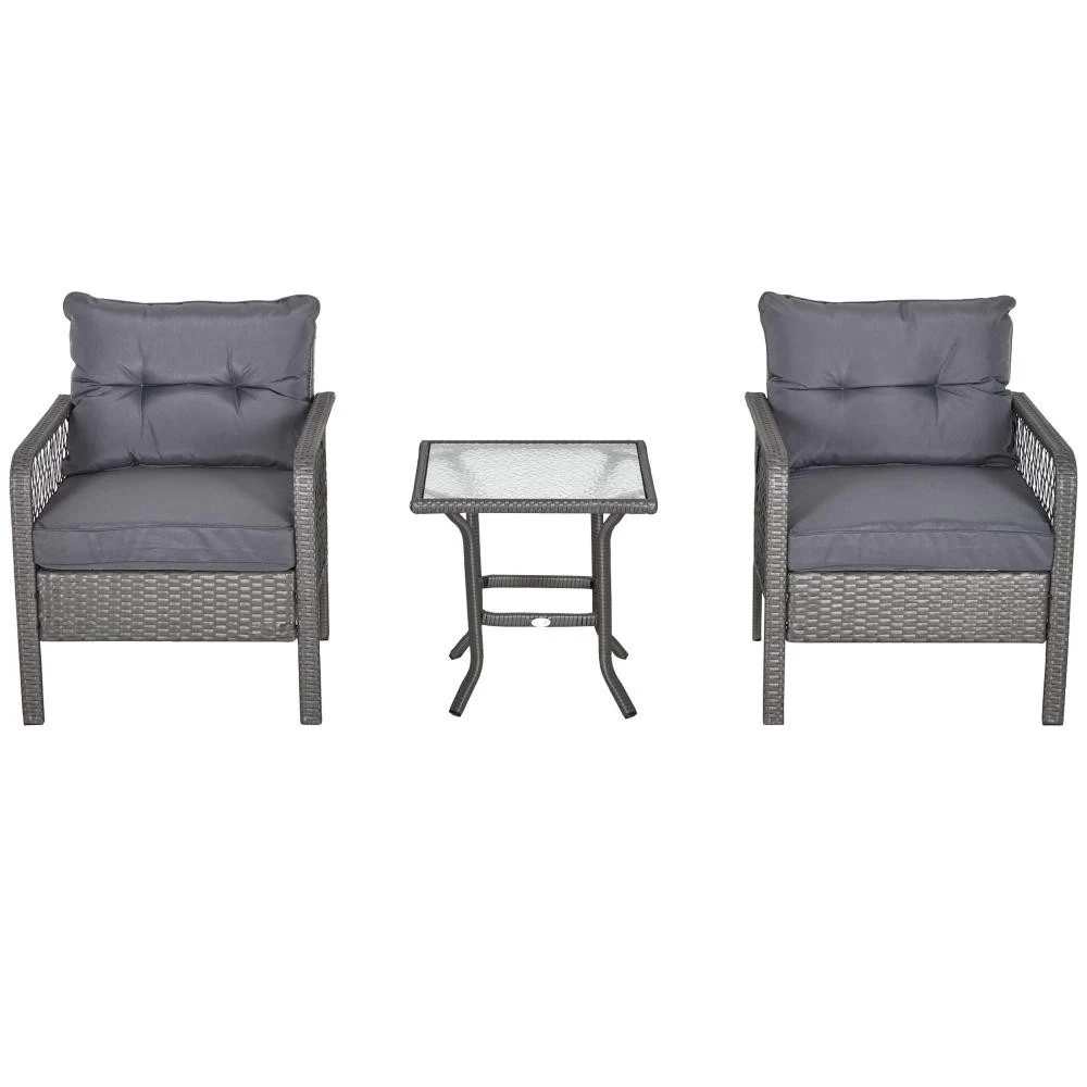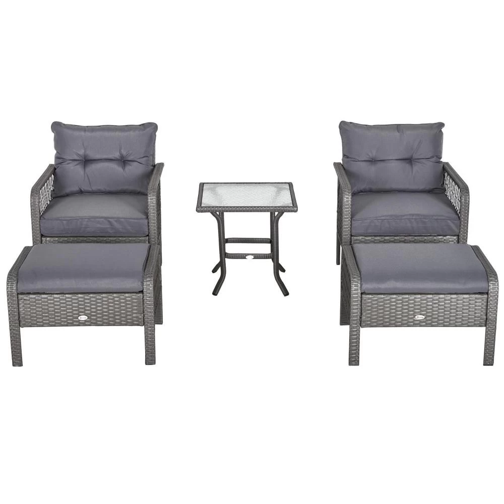 – Ensemble de jardin 2 places 5 pièces composé d’un lot de 2 fauteuils grand confort, 2 repose-pieds et table basse avec plateau en verre trempé