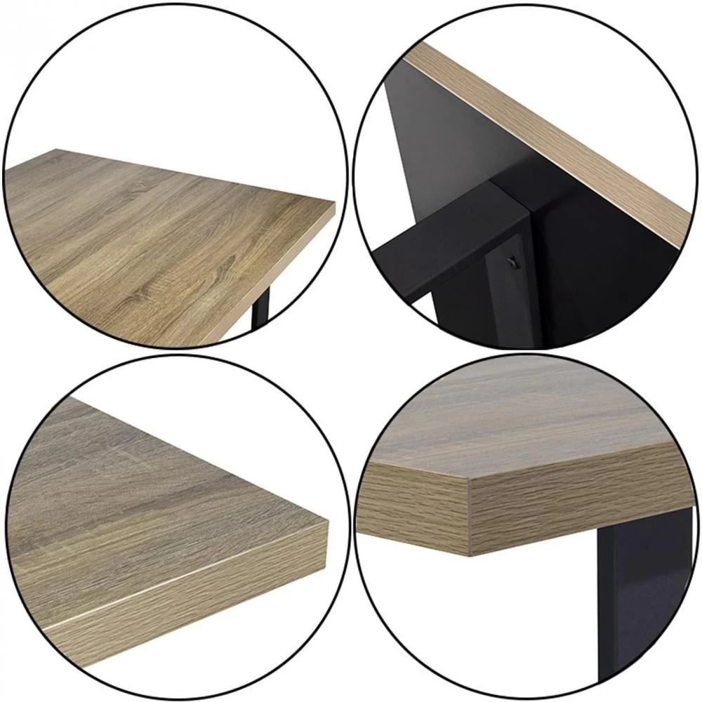 Son grand plateau (aspect chêne, noyer ou chêne blanchi) repose solidement sur 2 pieds en acier en forme de U.