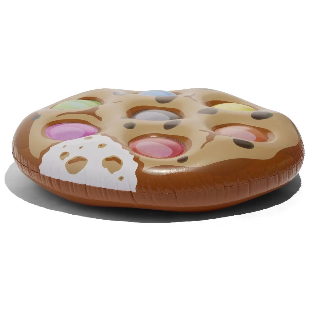 Matelas gonflable Funky en forme de cookie multicolore, idéale pour se prélasser sur l’eau et profiter du soleil.