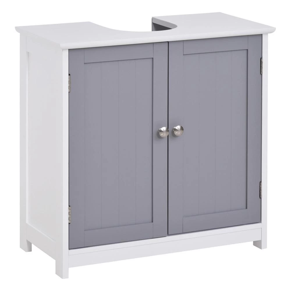 – Lignes épurées, meuble bicolore gris et blanc qui sublimera votre pièce d’eau