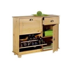 Meuble à Chaussures En Pin COLMAR 2 Abattants Finition Cirée