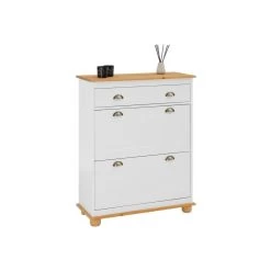 Meuble à Chaussures En Pin COLMAR 2 Abattants Lasuré Blanc Et Brun