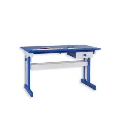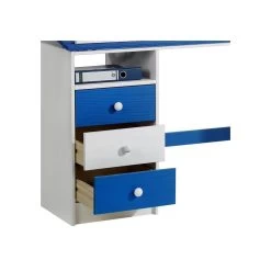 Bureau Enfant FLEXI En Pin Massif Réglable En Hauteur Et Plateau Inclinable Lasuré Blanc Et Bleu