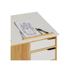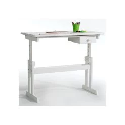 Bureau Enfant FLEXI En Pin Massif Réglable En Hauteur Et Plateau Inclinable Lasuré Blanc Et Rose