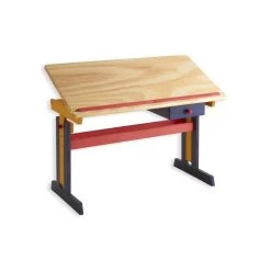 Bureau Enfant FLEXI En Pin Massif Réglable En Hauteur Et Plateau Inclinable Lasuré Multicolore