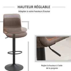 Lot De 2 Tabourets De Bar Vintage Réglable Pivotant Avec Repose-pied PU Marron Surpiqûre Orange