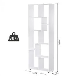 Bibliothèque étagère Zig Zag Design Contemporain 70L X 24l X 178H Cm Panneaux Particules Blanc