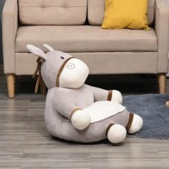 Fauteuil Enfant à¢ne Dim. 60L X 55l X 60H Cm Garnissage Moelleux Coton Revêtement Velours Gris Crème
