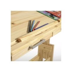 Bureau Enfant FLEXI En Pin Massif Réglable En Hauteur Et Plateau Inclinable Lasuré Multicolore