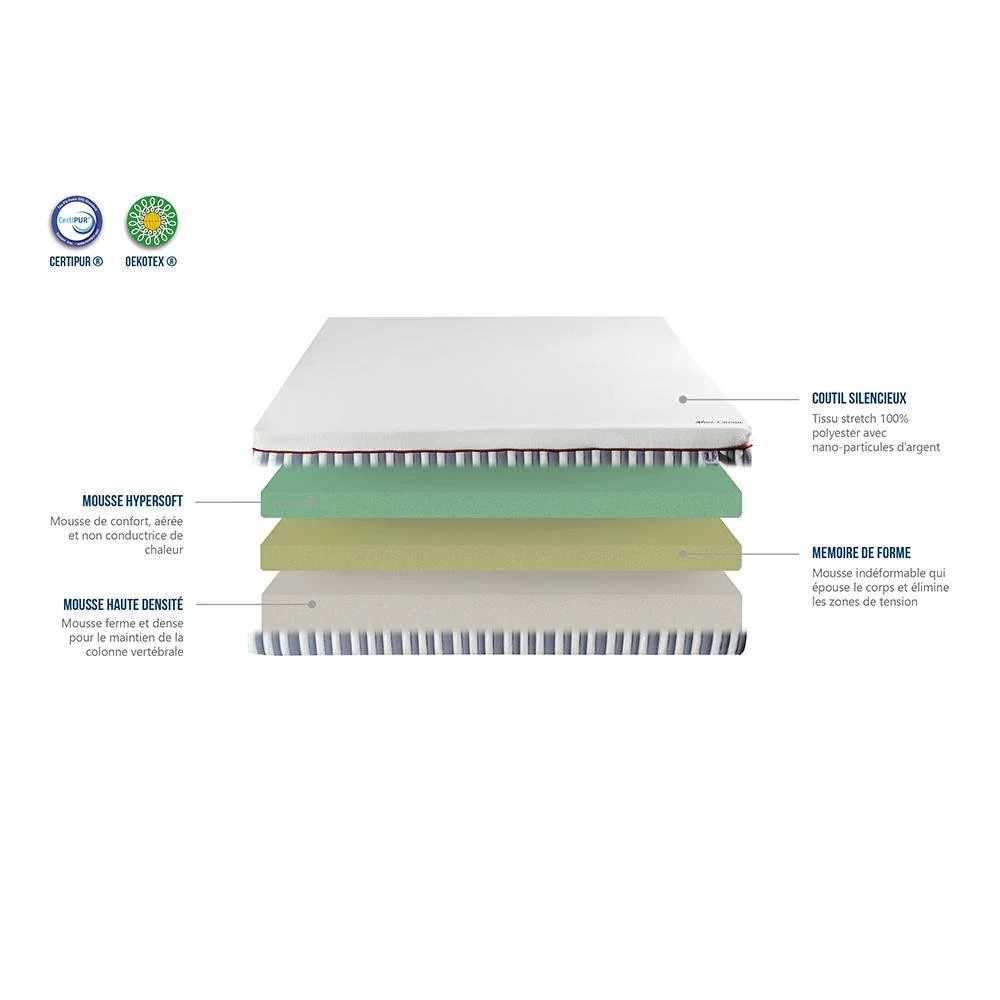 - La mousse Hypersoft en surface, indéformable, offre une incroyable sensation de douceur au coucher.