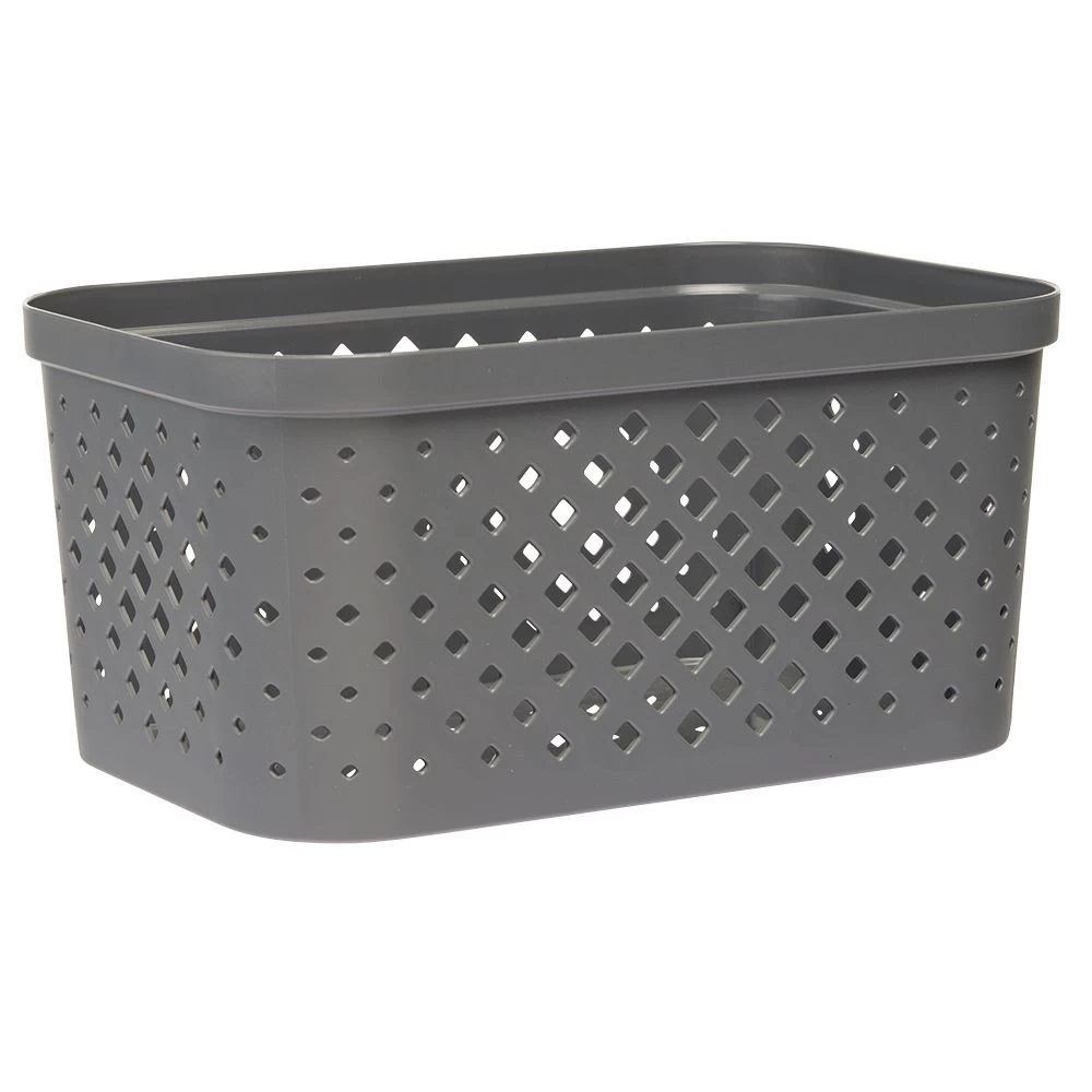 Son design ajouré en plastique gris se fondra aisément dans toutes vos pièces de rangement.