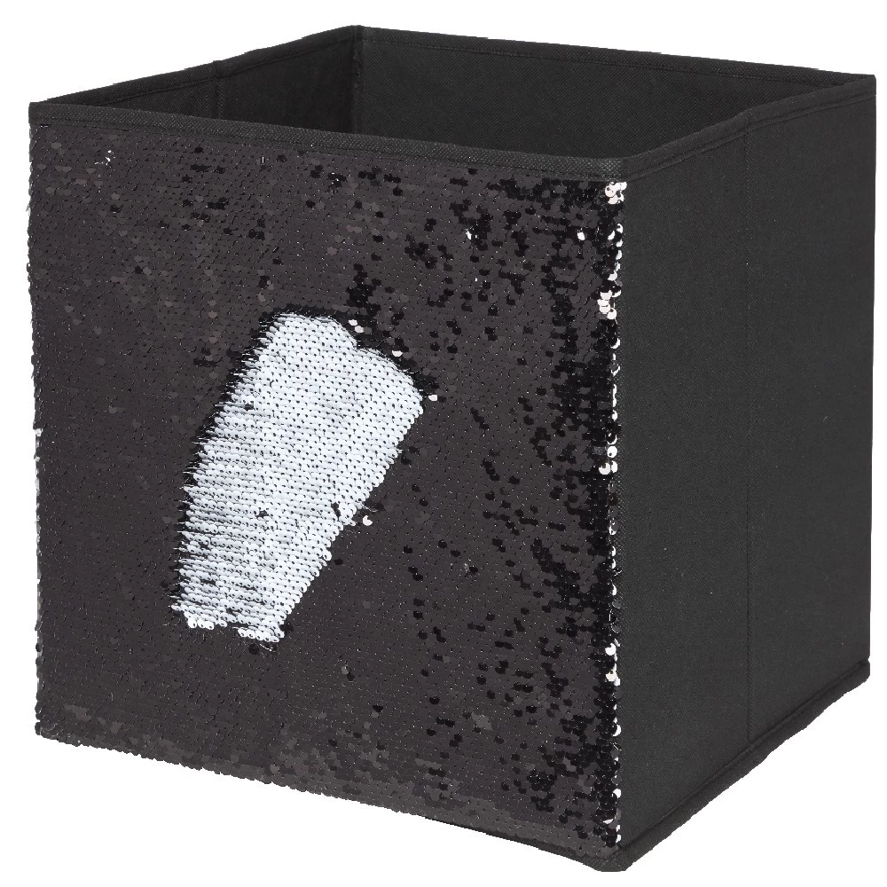 Besoin de ranger, trier ou ordonner vos affaires dans la salle de bain, le salon ou la chambre ? Notre panière de rangement Cubox noire à sequins est idéale.