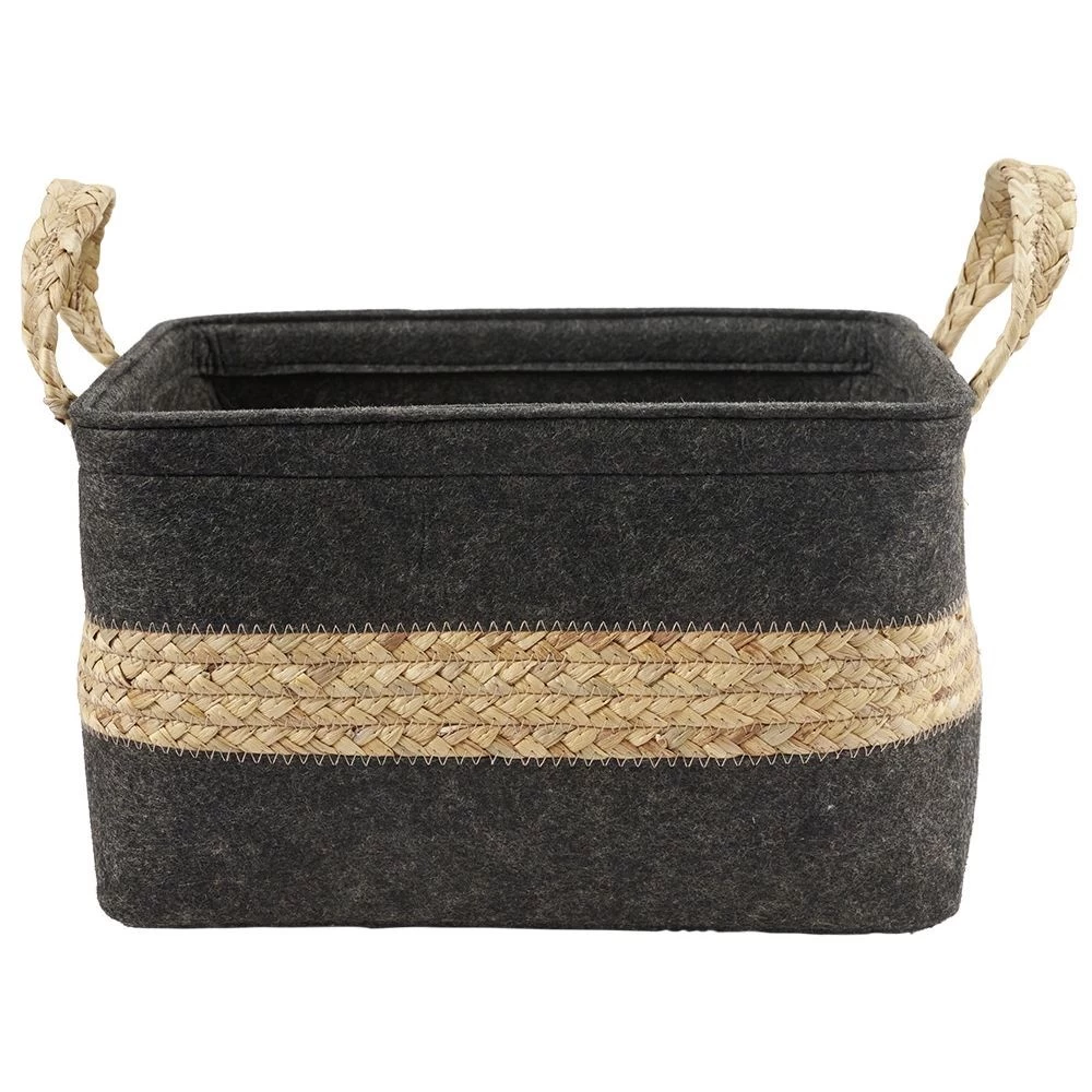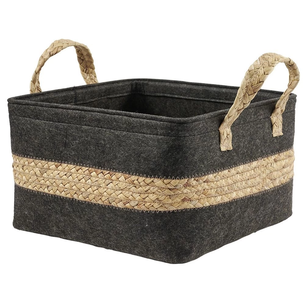 Apportez une touche authentique et élégante à votre rangement avec cette panière en jonc de mer noir et naturel.