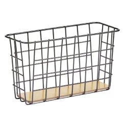 Panière en acier ajouré noir avec fond en bois, idéale pour optimiser le rangement de votre pièce que ce soit votre salon, votre salle de bain ou votre chambre.