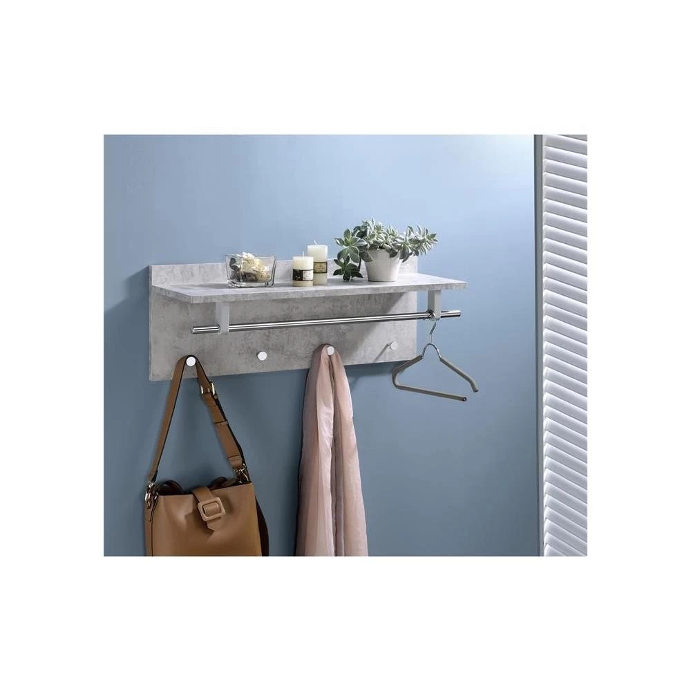 – Le porte-manteau est fabriqué à partir de panneaux de particules de bois au décor béton gris clair.
