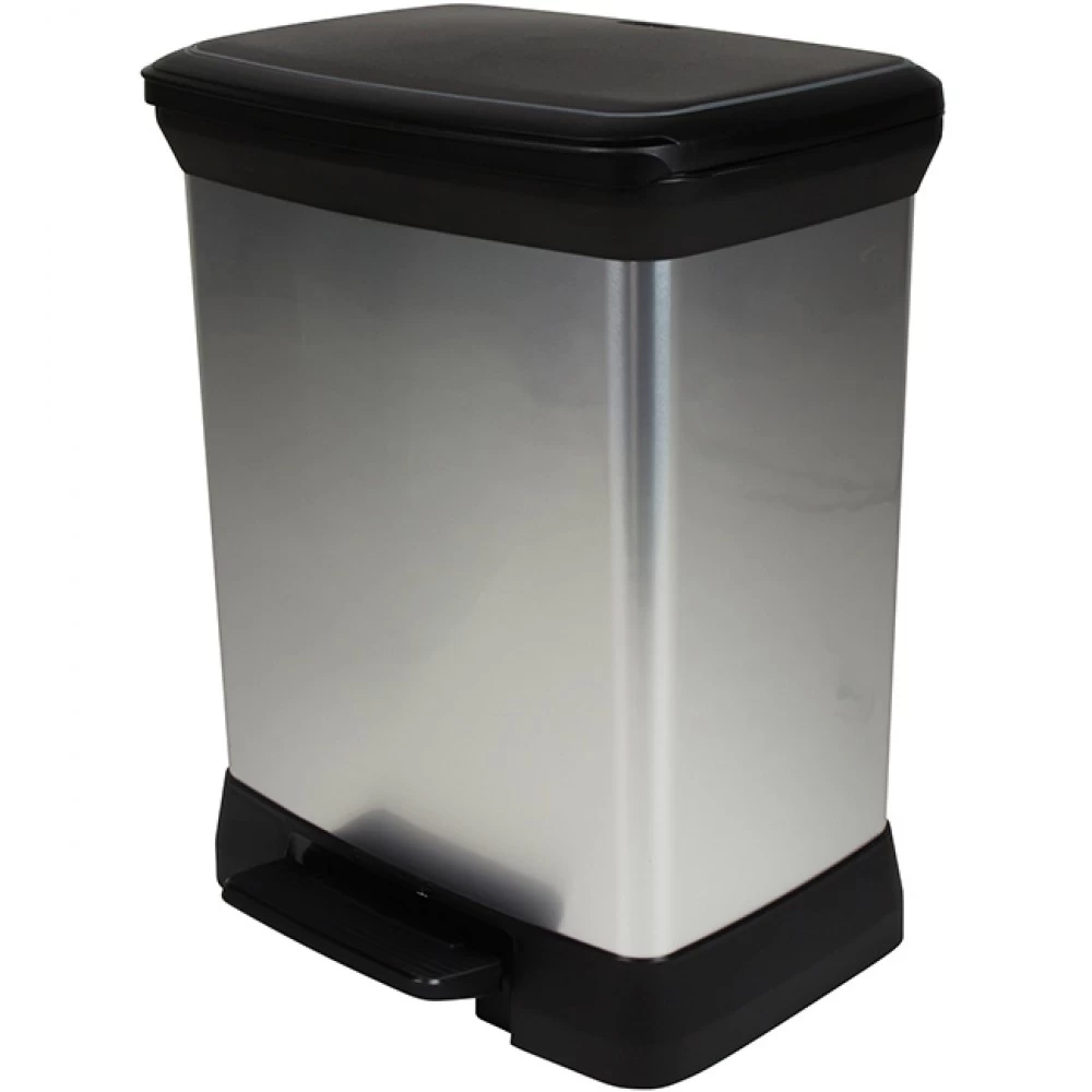 Poubelle à pédale d’une contenance de 30L. Avec son aspect aluminium, vous aurez le look d’une poubelle en métal sans les inconvénients : pas de trace de doigts, ni de rayures, ne rouille pas et se nettoie facilement d’un simple coup d’éponge.