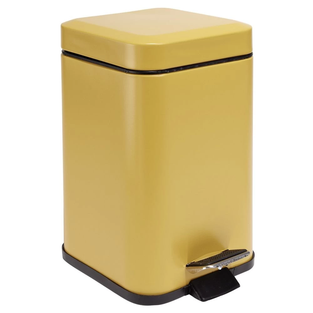 Cette poubelle à pédale en métal jaune trouvera idéalement sa place dans une salle de bain ou des sanitaires.