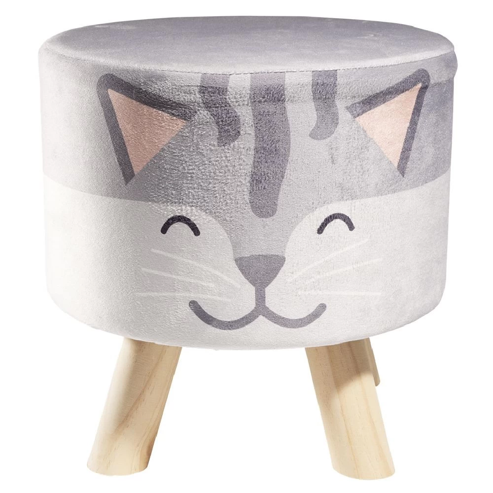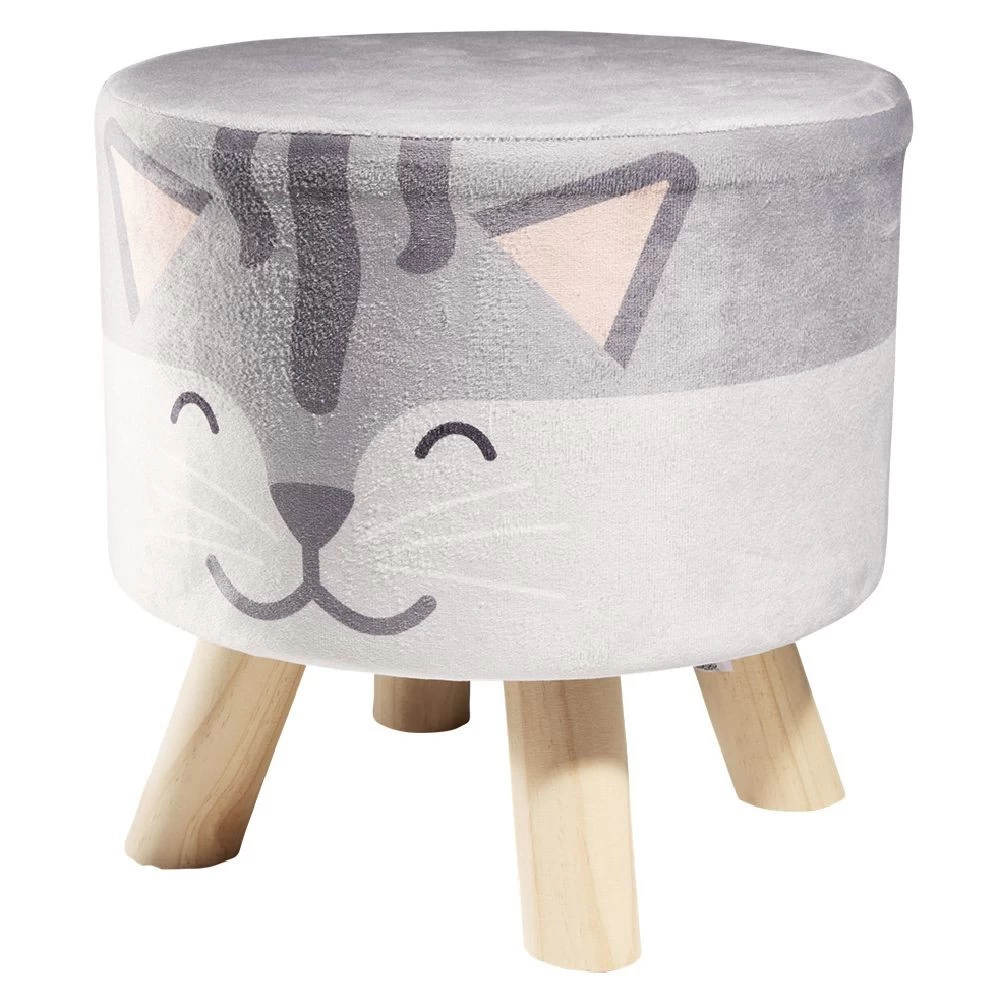 Apporter un confort supplémentaire à la chambre de votre enfant tout en y ajoutant une subtile touche déco avec ce pouf gris et blanc motif chat sur 4 pieds en bois.