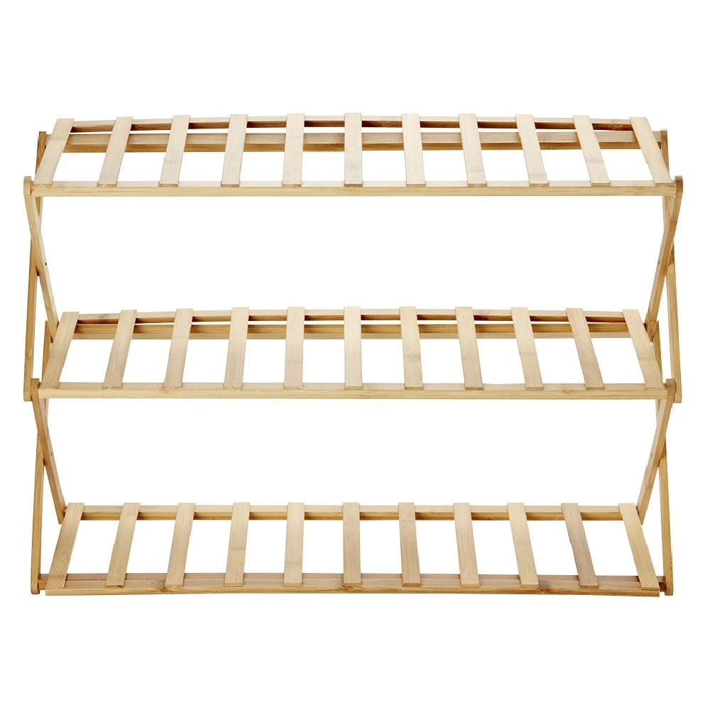 Range-chaussures repliable en bambou naturel, idéal pour organiser votre rangement tout en apportant une touche déco.
